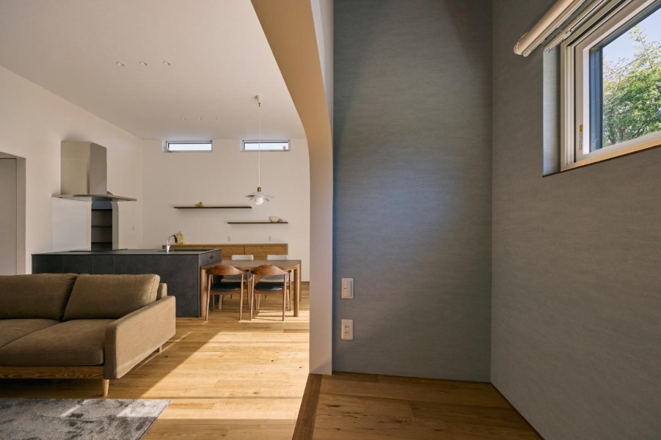LDKの天井高は約3.3m。他の部屋より1mほど高く、部屋に入った時の開放感は抜群です。視覚面でもコストの面でもメリハリをつけた設計になっています。