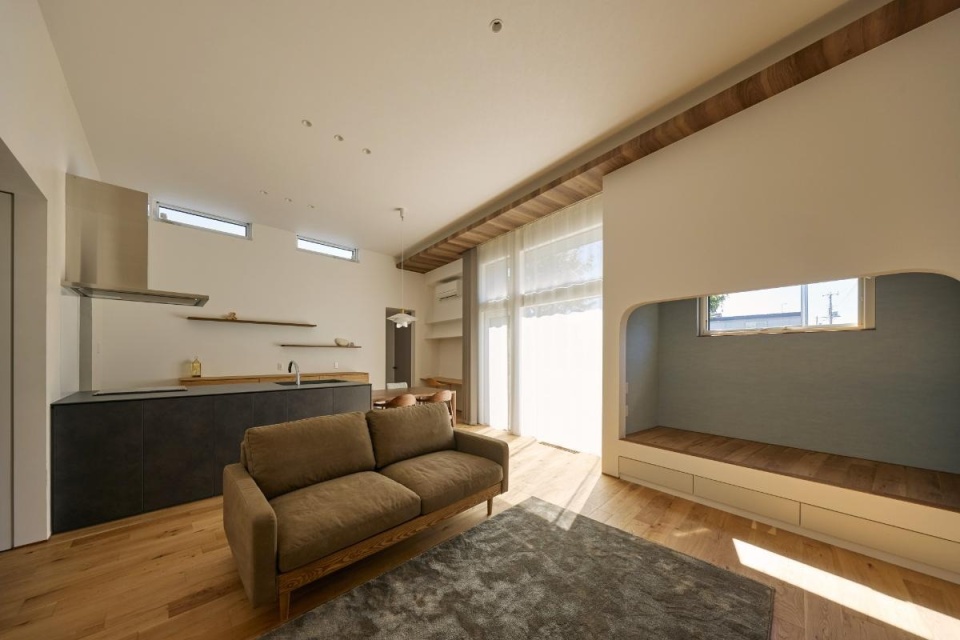 A 床下に温水を配管して床暖房にしています。空気を乾燥させることもなく、足元から温まるので快適です。暖房器具が見えないため、意匠性を損なうことがないのもポイントですね。断熱性能はUA値0.26とZEH水準を上回っており、真夏も真冬も心地よく過ごしていただけると思います。