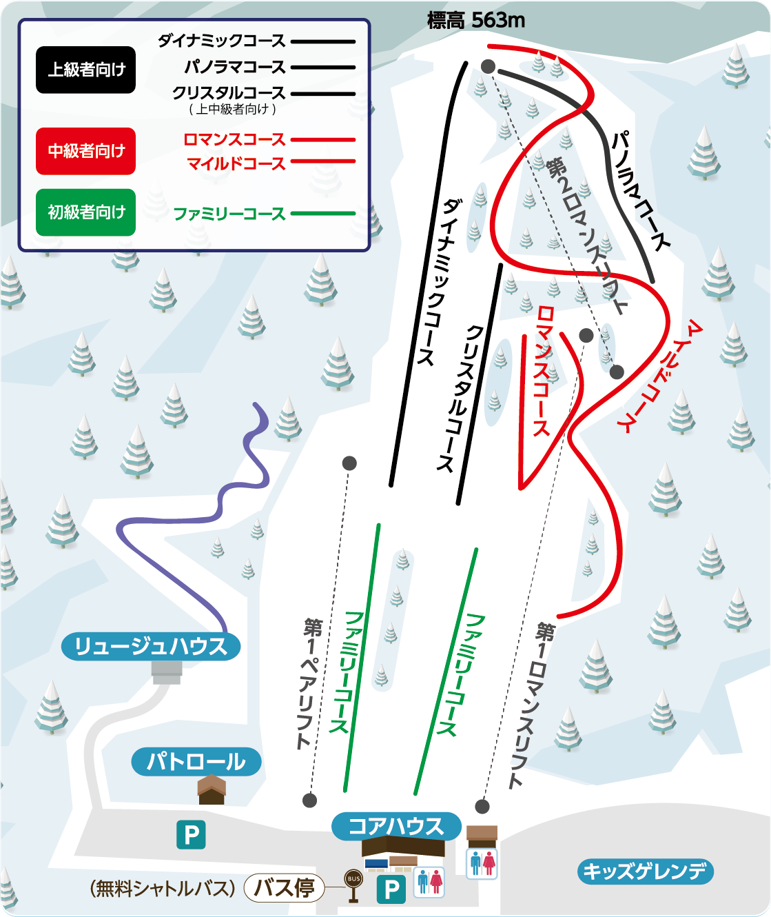 どこを滑るかですが、2024-25年シーズンまでは、クリスタルコースで足慣らししてからうさぎ平×エンドレス(笑)。疲れたらクリスタルコースとファミリーゲレンデ。