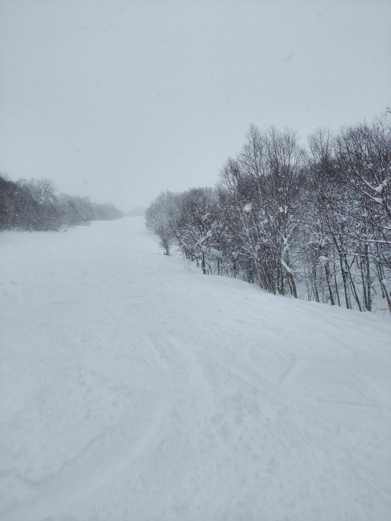 When I revisited Kamui on December 31, 2025, snowfall was light and the sidecountry closed — but even then, the groomed terrain delivered pure joy. The best surprise? The ungroomed sections beside the courses — soft, forgiving, and surprisingly smooth even without new snow. On telemark skis, which demand balance and rhythm, I could relax and flow naturally.